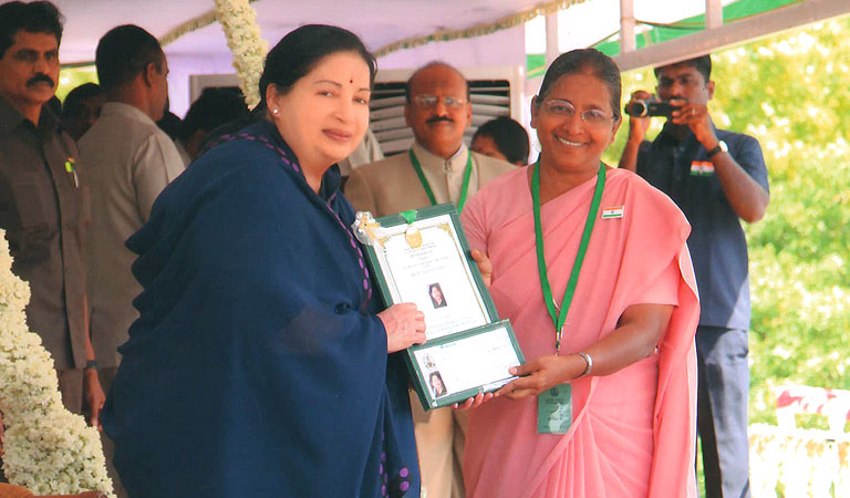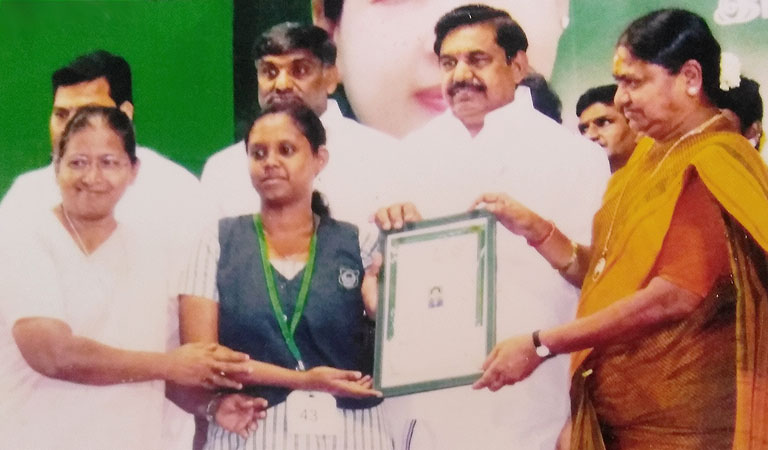 Our Head Mistress receiving award from then state Chief Minister, J Jayalalitha