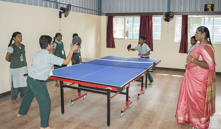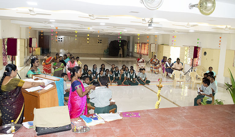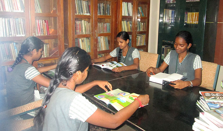 - Full fledged library with upto date books in Tamil and English is available. Children are encouraged to use the library often.